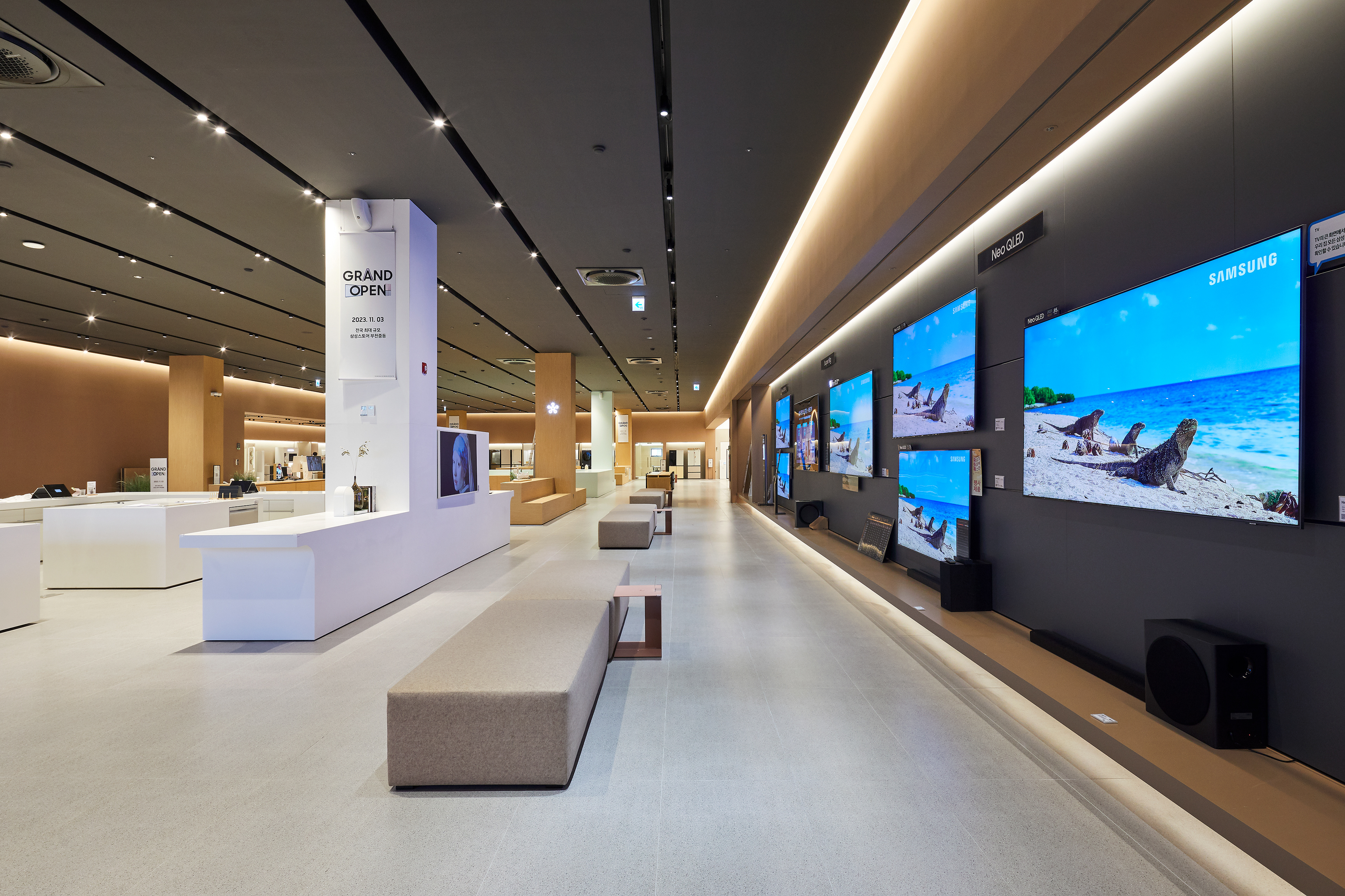 삼성스토어 부천중동 Client: Samsung Electronics Co. Location: Bucheon, Inchon, Korea Principal Use: Sales facility Gross Floor Area: 2,080 sqm. Year: 2023